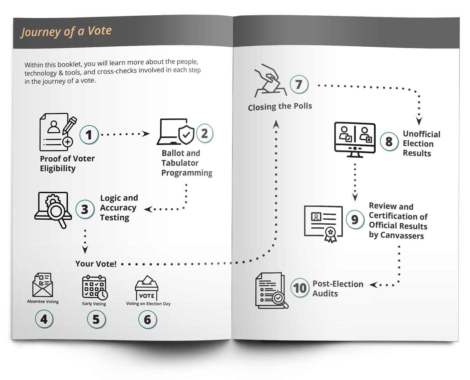Serving as a condensed version, the brochure format provides a clear visual representation of the experience. It is easy to display, pass out during events, and take home to share with friends. This branded resource is also a great follow-along tool to use during an election experience or open house event.